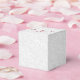 Elegant vit på vit filigree-utskrift mönster med namn och tack i chic kranbärsröd (eller någon färg) text. De här 2-tums fyrkantiga partiordningarna är vackra för bröllopsfavörer, möhippa-favörer eller andra speciella tillfällen.