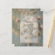 Elegant formell middagsmeny i en vintage stils bröllopsinbjudan samling som har en impressionistisk, viktoriansk era gammal mästare stil målning av en rosafärgad och smörgul rosor i en blomsterbukett placerad i en antiek fransk urna vas över varm dammig blå chateau vägg bakgrund. En guld och elfenbensmetallbåge i en tredimensionell ram med mjuk genomskinlig velum insida avslutar den klassiska lyxiga tidlösa stilen. Denna design skapades och grafiskt utformats av internationellt licensierade konstnär och designer, Audrey Jeanne Roberts, upphovsrätt. MSP0142