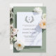 Den här inbjudan från elegant bröllop har en minimalistisk och förfinad estetik med en grönt och ett vitt övertäckningskort. Överst framhävs parets initialer med ett känsligt, halvljust vapensköld, med en sofistikerad ton. Namnen till paret, Elizabeth Grace och Michael Williams, visas på ett framträdande sätt, följt av detaljerna på deras speciella dag. Mjuk kräm-färgad ro ram inbjudan, vilket ger designen en romantisk beröring. Perfekt för par som vill ha ett klassiskt och naturinspirerat tema för sin bröllopsdag.
