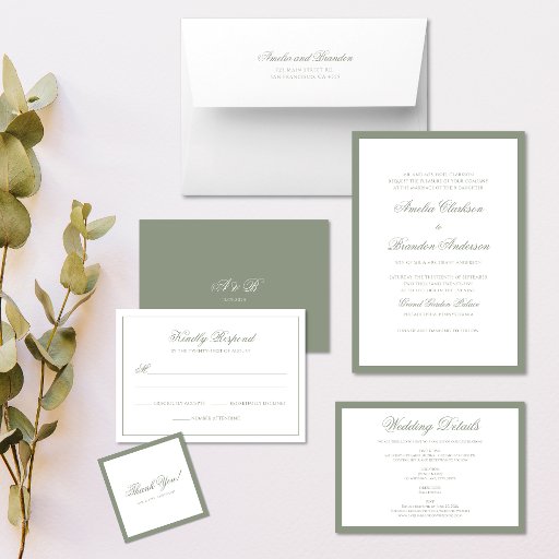 Kortet Formal Classic Sage Grönt Borderad Bröllop Information om hölje är ett perfekt som kompletterar ditt bröllop-paket. Med en elegant sage grönt gräns och tidlös skripttypografi, är det här kortet ett vackert presenter-viktigt detaljer om bröllop med en sofistikerad beröring. Idealiskt för vår och sommar bröllop, ger det dina inbjudningar en förfinad och sammanhållen blick.