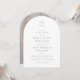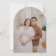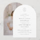 Bröllopsinbjudningar på spanska. Ett elegant bröllopsinbjudande i form av en båge. Ett klassiskt monogram med parets initialer i en delikat kapselliknande ram sticker ut, tillsammans med en typsnitt med seriffer och detaljer i kopparstick-kalligrafi som ger en sofistikerad känsla. På baksidan förvandlas inbjudan till ett vackert minne, med ett foto av brudparet och deras namn tillsammans med bröllopsdatum. En elegant och förfinad design, perfekt för formella bröllop, där varje detalj räknas. Du kan anpassa texten och bilden för att skapa en verkligt unik inbjudan. Version på engelska finns också tillgänglig.