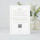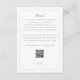 Ett formellt kort med bröllopsdetaljer designat för att samordna med den mossgröna bröllopsbrevpapperssamlingen. Detta eleganta inklusionskort har en mjuk mossgrön bakgrund, förfinad vit script- och serif-typografi, en klassisk kant och en diskret QR-kod för att dela ytterligare bröllopsinformation.