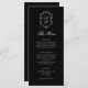 Den här klassiska vanliga svarta och vita bröllop-menyn har en ren tidslassofistikerad design med vintagen färg & calligraphy-skript och elegant blommigt monogram vapensköld.