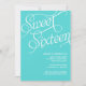 Denna blå 16-inbjudan är dekorerad med vita formella bokstäver.