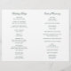 Klassiskt stil-vikt Bröllopsprogram med accent ord i elegantens kalligrafi-typografi. På framsidan finns din händelseinformation, insidan har din bröllopsfest och ceremoni. På baksidan finns en mall för meddelanden/citattecken. All text är grönt över en vit bakgrund och kan ändras till valfritt färg genom att klicka på knappen "anpassa". Dessa Bröllopsprogram är perfekter för ett formellt bröllop.