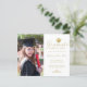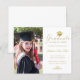 Den här personligen i elegantens budget visar studenten-anslagskort ditt foto till den lämnat och till högerna ett faux guld grad cap med ord "Student", klass/år, namn och andra ceremonidetaljer i faux guld-skriptkalligrafi för att anpassa dig till en vit bakgrund. Designad av Susan Coffey.
