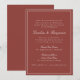 En bröllopsinbjudan utan tidslängd som innehåller en rik rostilröd bakgrund med klassisk serif- och skripttypografi för ett förfinat och sofistikerat utseende. Ett tunt vitt gräns tillför en smula elegans, skapar perfekt för modern, rustik eller höstbröllop. Perfekt för par tittar för en enkel, men snyggt, stationära bröllop-design som anger tonen för ett varmt och intimt firande.