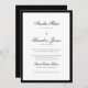 Gör en tidlös påstående med vår formella klassiska svartvita Gräns-skriptbröllopsinbjudan. Den här eleganten har en fet svart gräns som ger en skarp vit bakgrund, där parets namn visas i ett snyggt skript och händelseinformation i ett rent serif-teckensnitt. Perfekt för svarttids-bröllop och formellt firande, denna inbjudan är sofistikerad och raffinerad charm. Dess minimalistiska men ändå slående utformning sätter in steget för ett oförglömligt evenemang, vilket garanterar att dina gäster upplever speciella dagars elegans och storhet.