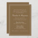 En förfinad bröllopsinbjudan med en varm brun bakgrund med klassisk serif- och skripttypografi för ett tidlöst och sofistikerat utseende. Ett tunt, vitt gräns-ramar, designen, som tillför lite elegans. Perfekt för modernt, rustiskt eller höstligt bröllop, denna inbjudan anger tonen för ett snyggt och intimt firande. Perfekt för par som kärlek är en minimalist men som ändå bjuder på estetiskt.