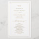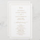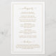 Enkelt men elegant guld-Bröllopsprogram med minimal och ren layout med ditt monogram överst tillsammans med gräns. Det klassiska Bröllopsprogrammet stil med traditionell känsla är underbart för ett formellt bröllop. Dessa Bröllopsprogram trycks på lakan av papprare för ett budgetvänligt alternativ.