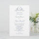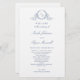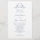 Elegant vitt och dammigt blått Bröllopsprogram med ett vackert handtaget monogram med parets initialer i Calligraphy. Modern handskriven calligraphy inslag. Du kan göra textändringar och -justeringar genom att välja "Redigera med verktyg i designläge". Framåt med ceremonin i bröllop, tillbaka med bröllopsfest namn och tack för ert budskap till gästerna. En del av vår "Dusty Blue Watercolor, Botanical Monogram Bröllop"-samling med olika samordningsprodukter tillgängliga.