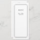 Utformningen har en ren och klassisk svartvit design som gör den minimalistisk och elegant. Den har en enkel dubbla-line gräns med runda hörndetaljer som ram i layouten. Baktill är en ovalform, inuti är ett 2 monogram av paret med den detaljerade menyn skriven i ett formellt kalligrafiskt skript.