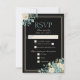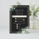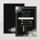 Svart formellt bröllops-svarskort med teal och krämfärgad blommig arrangemang