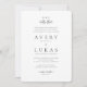 Gör ett påstående med den här Formal Black White Monogram bröllopsinbjudan, som kombinerar modern minimalism med klassisk elegans. Den botaniska vapenskölden och det förfinade svartvita skriptet skapar en enkel men sofistikerad utformning, perfekt för ett tidlöst formellt bröllop.
