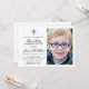 Elegant och formell skrift skapar en vacker inbjudan till denna speciella händelse. Din sons bild placeras till höger om beskrivningen av första kommunionen. En perfekt souvenir för mor- och farföräldrar, faddrar och speciella vänner.