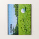 Fira din passion för golf med detta vackra golfinspirerade pussel. Designen visar en golfboll på en frodig trädplanterad fairway med en klar blå himmel i bakgrunden! Texten lyder "Förmodligen på golfbanan!". Pusslet är en bra lågkostnadsgåva för pensionärer eller för alla som älskar sporten! Vänligen bläddra bland vår kompletta samling av Florida, kust-, tropiska och Lowcountry-kort, presenter och heminredning. Speciella designförfrågningar accepteras.