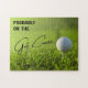 Fira din passion för golf med detta vackra golfinspirerade pussel. Designen visar en närbild på en golfboll på en tee på en perfekt välskött golfbana! Texten lyder "Förmodligen på golfbanan!". Pusslet är en bra och prisvärd pensionsgåva eller en gåva till alla som älskar sporten! Våra kompletta samling med Florida-, kust-, tropiska och Lowcountry-kort, presenter och heminredning finns att bläddra igenom. Speciella designförfrågningar accepteras.