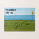 Fira din passion för golf med detta vackra golfinspirerade pussel. Designen visar en frodig perfekt skött golfbana med ett lugnt turkos hav i bakgrunden! Texten lyder "Förmodligen på golfbanan!". Pusslet är den perfekta lågkostnadsgåvan för pensionärer eller gåva till alla som är fans av sporten! Vänligen bläddra bland vår kompletta samling av Florida-, kust-, tropiska och Lowcountry-kort, presenter och heminredning. Specialdesignförfrågningar accepteras.