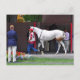 Formpassning, en två år gammal, bedövande roan-fyllning av Tapit. Denna rena vita eller roanska dotter till den ledande siren "Tapit" visas här för att ta redo till springa i en speciell jungfru tävling i Saratoga, eftersom ägaren till Stonestreet Farms beundrar hennes skönhet. Denna otroliga grundras har en mycket ovanlig färgad svan med grått-, vit- och kastanjetoner. Fleetbild
