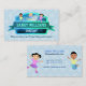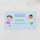 Mycket professionell, färgstarkt och behagligt affärskort. Vibranta blåaktiga toner komplimenterar färger med barnens logotyp. Gör ett underbarare varaktigt första intryck när du tittar för klienter för barntjänsten. Impress föräldrar med det här vackra affärskortet. Oavsett om du är barnvakt, barnvakt, vaktmästare, förskolebarn, daghem eller annat, kommer den här färgstarka, trevliga designen att vara säker på att imponera.