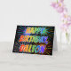 Denna roliga, livliga och mångfärgade födelsedagsgratuleringskortdesign har budskapet "GRATTIS PÅ FÖDELSEDAGEN" och det vanliga förnamnet "DALTON" med bokstäver som har ett färgrikt regnbågsspektrum som gradientfärgning. Framsidans bakgrund har också ett färgglatt fyrverkeriinspirerat mönster. Insidan har ett anpassningsbart gratulationsmeddelande, eller kanske kan rensas och lämnas tomt om ett meddelande ska skrivas för hand istället. Ett födelsedagsgratulationskort som detta kan vara roligt att ge till någon som heter Dalton på deras födelsedag.