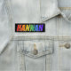 Denna roliga, vibrerande mångfärgade namn brickadesign presenterar allmänningförnamnet "HANNAH", med breven av namn som har ett färgrikt mönster för färgläggning för lutning för regnbågespectrumnågot liknande, på en svart kulör bakgrund. En nametagnågot liknande denna styrka ha på sig av anställd, en representativ kundtjänst eller en stabsmedlem vars namn är Hannah, för att hjälpa att identifiera weareren till andra. [~Z0000344]