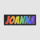 Denna roliga, vibrerande mångfärgade namn brickadesign presenterar allmänningförnamnet "JOANNA", med breven av namn som har ett färgrikt mönster för färgläggning för lutning för regnbågespectrumnågot liknande, på en svart kulör bakgrund. En nametagnågot liknande denna styrka ha på sig av en volontär, en stabsmedlem eller anställd, som namnges Joanna, att hjälpa att identifiera weareren till kunder eller annan folk. [~Z0000344]