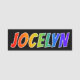 Denna roliga, vibrerande mångfärgade namn brickadesign presenterar allmänningförnamnet "JOCELYN", med breven av namn som har ett färgrikt mönster för färgläggning för lutning för regnbågespectrumnågot liknande, på en svart kulör bakgrund. En nametagnågot liknande denna styrka ha på sig av anställd, en representativ kundtjänst eller en stabsmedlem vars förnamn är Jocelyn, för att hjälpa att identifiera weareren till kunder eller annan folk. [~Z0000344]