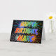 Denna mångfärgade och roliga design för födelsedaghälsningkortet presenterar meddelandet "GRATTIS PÅ FÖDELSEDAGEN," och allmänningförnamnet "MARC" med breven som har ett färgrikt mönster för färgläggning för lutning för regnbågespectrumnågot liknande. Bakgrunden av bekläda presenterar också ett färgrikt bristande fyrverkerier inspirerat mönster. Insidan presenterar ett beställnings- hälsningmeddelande eller kunde kanske göras klar, och tom vänstersida, om ett meddelande är att vara skriftligt by, räcker i stället. En något liknande för födelsedaghälsningkort detta kunde vara en roligt långt som överför ett meddelande för anpassadefödelsedaghälsning till någon namngav Marc. [~Z0000350]