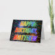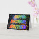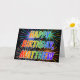 Denna roliga, livfulla och mångfärgade födelsedagsgratulationskortdesign har meddelandet "HAPPY BIRTHDAY" och det vanliga förnamnet "MATTHEW" med bokstäver som har ett färgrikt regnbågsspektrum som gradientfärgmönster. Framsidans bakgrund har också ett färgglatt fyrverkeriinspirerat mönster. Insidan har ett anpassningsbart gratulationsmeddelande, eller kanske töms och lämnas tomt om ett meddelande ska skrivas för hand istället. Ett gratulationskort som detta kan vara ett roligt sätt att uppmärksamma födelsedagen för någon som heter Matthew.