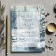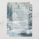 Rustik vinterskog, dammig, blått och vitt vattenfärg, modern typografi-manusinbjudan till bröllop.