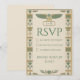 Ett fängslande, majestätiskt forntida egyptiskt RSVP-kort med papyrustextur, lotus- och ankh-ikoner - perfekt för en gudomlig, grön-guld bröllopssvit. Fullt redigerbara svarsalternativ och datum för en premiumfinish i museikvalitet.