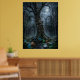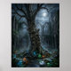 En surreal månbelyst gårdsplan domineras av ett kolossalt urgammalt träd, vars snurriga rötter och strukturerade bark bildar en nästan skulptural närvaro. Bakom det står ruinerna av en en gång storslagen gotisk herrgård i elegant förfall, med krossade fönster, murknande sten och igenvuxna stigar. Mjukt månljus filtreras genom drivande dimma och belyser lysande svampar, fuktig sten och intrikata naturliga detaljer. Scenen blandar natur och arkitektur till en melankolisk men raffinerad komposition fylld med djup och atmosfär. Detta konstverk är idealiskt för älskare av mörk fantasy och tidlösa, mystiska landskap.