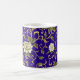 Från en bild av en gammal orientalisk tygdesign, blommor och rullar på mörkblått.