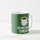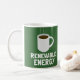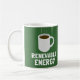 Går har grönt och ditt koffein, för. Dessa enkla roliga grafiska shows den mest förnybara, mest hållbara miljövänliga energikällan allra - en kopp av kaffe! Vitkaffemuggen sitter ovanför vittext, som läser, "förnybar energi.", Gör ett humoristiskt påståendeobjekt för din favorit- miljöaktivist!