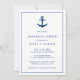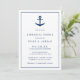 Nautisk middagsinbjudan med enkel och modern design med ett marint blåankare tillsammans med dina händelsedetaljer inuti gräns, över en vit bakgrund. Dessa elegant inbjudningskort är perfekter för en sommarkust som vid stranden kastas över firande.