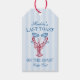 Att skaka bruden på stranden med den här söta kust-bakteriefesten är bra taggar, perfekt för att fästa vid dina välkomstpåsar. "Last Toast on the Kusten" visas i ett halvblått bokstäver, med en illustration av en röd hummer som klumpar två champagnekoppsglas. Anpassa med brudens namn och destination.