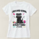 Lönsam skoldesign med en stressat hund och citatet "Jag överlevt skolan, allt är bra". Perfekt för sista skoldagen före sommarsemester eller sommaruppehåll. För studenter och lärare.