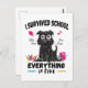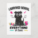 Lönsam skoldesign med en stressat hund och citatet "Jag överlevt skolan, allt är bra". Perfekt för sista skoldagen före sommarsemester eller sommaruppehåll. För studenter och lärare.