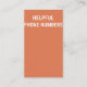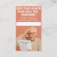 Gör ett bestående intryck med detta yrkesmässigt designade affärskort som är skräddarsytt för licensierat försäkringsbolag som betjänar det högre agenten. Det här kortet har ett tydligt kontaktutrymme och ett användbart resursavsnitt med viktiga nationella stödnummer och är både informativt och lättillgängligt - perfektens blandning av form och funktion. Skapat med efterlevnad i åtanke erbjuder fronten en konversationsstartsgrafik, medan ge på baksidan ger dina kunder tillgång till viktiga hjälptelefonlinjer för program som rör hälsa, boende och inkomststöd. Perfekt för dem som ger vägledning om förmåner vid pension-ålder och vårdalternativ. Perfekt för: Agent för sjukförsäkring och livförsäkring och Pension Planning Consultants, licensierade rådgivare i Anpassadet Oberoende Brokers & Fält Agent och kompatibel - det här är ditt visitkort för att bygga tillit och leverera värde.