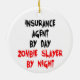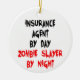 Denna humoristiska prydnadsartikel med citatet "Försäkring i Agent vid Dag Zombie Sayer i natt" är perfekt för alla försäkringar som agent som kärlek skrattar åt.