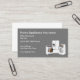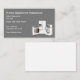 Tema affärskort för hemutrustning för reparations- eller försäkringsföretag med bild av tre apparater i bakgrunden och enkel layout.