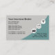 Försäkringsmäklare eller affärskort i agent har en elegant modern utformning och bild av ett hem, en bil och en medicinsk symbol som representerar hemförsäkring, sjukförsäkring och fordonsförsäkring. Designad för agent, agentur, oberoende eller mäklarverksamhet. Presenterat på affärskortet pappra lagrar i rundat hörn.