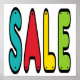 Försäljningssymbolen har stora bokstäver i olika "spikade på" färg till tecknet. För ett klart och tydligt "Sale"-tecken.