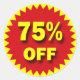 Försäljningsmärke för 75 % OFF-ljus röd och gult i detaljhandeln.