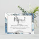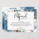 Hade du behövt skjuta upp din evenemang? Inga problem, informera dina gäster med detta eleganta bröllops- (eller annan evenemang) -kort för meddelande om uppskjutning. Stunning blå akvarellfläck med utsökt handmålad blå blomma som inramar detaljerna om uppskjutning. Blommor och blad i dammig blå, marinblå, vit, grå och salvia-gröna toner. Elegant modern handskriven script-typografi. Möjlighet att använda den för alla evenemang. Utrymme för att lägga till ditt eget meddelande. Modern baksida med blå akvarellfläck. En del av vår "Rustic Blue Mountains" bröllops- och evenemangssamling.