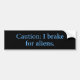Bumper Sticker-konstruktionen med det lustiga påstående: Försiktighet: Jag bromsar för Utomjordingar.
