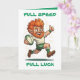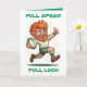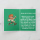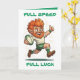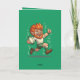 En rödhårig leprechaun-idrottsman störtar mot mållinjen med bollen hårt knuten och tummen upp. Rörelselinjer, klöveranda och djupgrön energi fångar ruschen på matchdagen blandat med St. Patricks dags bus.