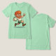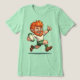 En rödhårig leprechaun-idrottsman störtar mot mållinjen med bollen hårt knuten i handen och tummen upp. Rörelsemönster, klöveranda och djärv grön energi fångar rushen på matchdagen blandat med St. Patricks dags bus.