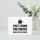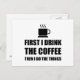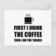 Fans av varma morgonbryggda koffeindrycker skojar innan jobbet först dricker jag kaffet sen gör jag sakerna. Kolla in denna roliga anpassade design på t-shirts, skjortor, muggar, fodral, presenter och kläder.